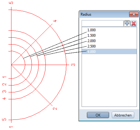 Hier ein Beispiel, bei dem durch Radiuseingabe 3 Bereiche generiert wurden.