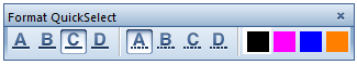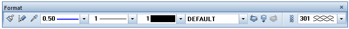 The Format QuickSelect toolbar includes a drop-down list with the four most important settings for pen thickness, line type and line color. You can use Defaults, Pen Thickness, Line types and Color Assignments to configure which settings are presented for selection on this toolbar.