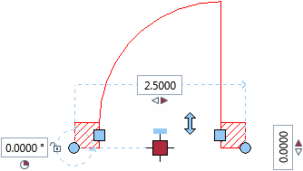 Handles are colored symbols that appear at object-specific geometric points of selected elements and that provide context-sensitive interactivity. By clicking these handles, you can modify the geometric properties of elements. The shape and color of a handle indicate what you can do with this handle.