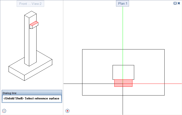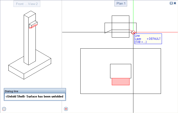 When you point to an edge of which the adjoining surface can be unfolded, a preview of the surface is displayed. Otherwise, you can see a corresponding symbol in the workspace and the program displays a message to this effect in the dialog line.