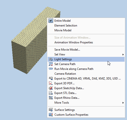 You can now select Light Settings straight from the shortcut menu of the animation window; you no longer have to click More Tools first. This saves you quite a few clicks when you are fine-tuning the scene.