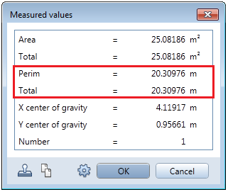When you measure areas, the perimeter is also calculated and added up.