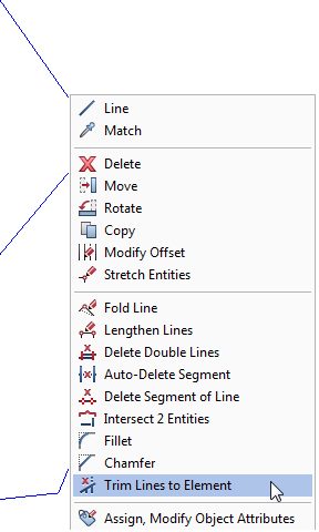 The Trim Lines to Element tool, which you can use to shorten or lengthen lines and polylines as far as the point where they intersect a reference element, has been added to the shortcut menu of lines.