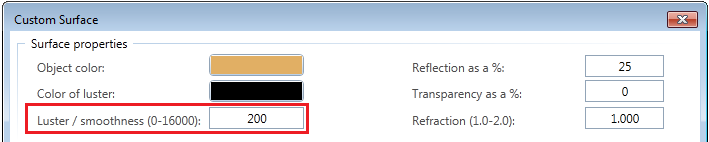 Assign Custom Surfaces to 3D, Archit. Elements tool. This is not quite correct though; therefore, the term has been changed to luster / smoothness.