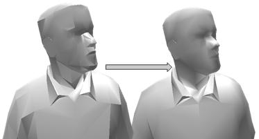 The effect of the Phong angle is clearly visible in objects without textures. When a texture is applied, this effect is not evident at first glance although the Phong angle has an impact on shadows and rendered images. The Phong angle smoothes the representation of the inner edges of the polygon but it does not affect the outer boundary, which is defined by the respective camera position.
