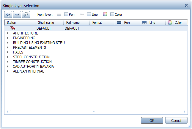 All the tools that expect you to select only one layer no longer open the full Layer dialog box; instead, you can see a simplified dialog box where you can select the current layer. Using the shortcut menu, you can specify which layers are displayed. This setting is independent of the setting in the palette or Layer dialog box.