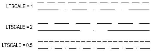 Globální faktor LTSCALE: Zde můžete zadat hodnotu pro AutoCAD proměnnou LTSCALE. Tím specifikujete globální hodnotu pro faktor měřítka typu čar. Čím nižší je hodnota, tím vyšší je počet opakování na jednotku výkresu: