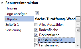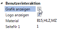 In der Palette Parameter unter Benutzerinteraktion haben Sie folgende Möglichkeiten: