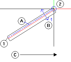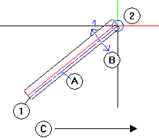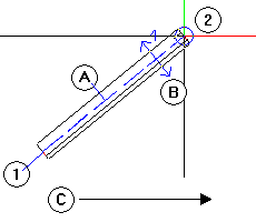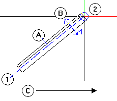 Components are entered along the component axis. Depending on the axis' position within the component, you can use the offset direction to specify on which side of the component axis (relative to the direction in which the component is entered) the component is drawn. With Reverse offset direction, you have the option to ”tilt” the wall or to reverse the setup of the construction layers.