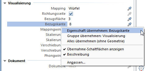 In der Palette Eigenschaften können Sie auch die Richtungsseite der Textur ändern, und zwar für jedes einzelne Element. Die Richtung können Sie von der gewählten Fläche oder Kante übernehmen.