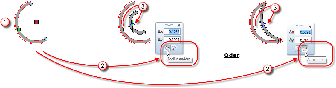 Weitere Bedienungshinweise finden Sie unter "Kreise und Ellipsen direkt modifizieren".