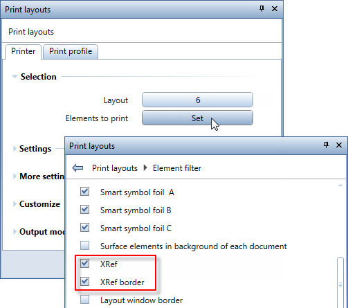 By popular request, you can now include XRefs and XRefs borders in printouts using the Print Layouts tool. All you need to do is click the Set button beside Elements to print.