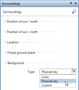 Apart from a background color, you can now use the physical sky for the background. The physical sky automatically adapts to the place and time, making it easier for you to create scenes at nighttime.