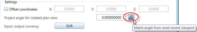 In the Project Settings dialog box, you can now match the Project angle for rotated plan view from the most recent viewport.