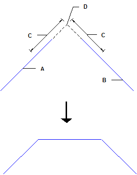 - Zadejte šířku zkosení (zadáním bodu nebo číselné hodnoty). Šířka zkosení je hodnota od průsečíku obou elementů až k průsečíku elementu se zkosením.