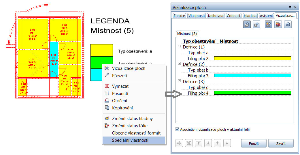 V rámci rozšíření bylo dále změněno kontextové menu asociativní legendy. Otevření dialogu stávající vizualizace ploch je tak v podstatě možné dvojklikem vlevo.