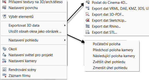 V předchozích verzích programu Allplan jste mohli v animačním okně vyvolat speciální kontextové menu, ve kterém jste mohli vybírat nejdůležitější animační funkce.