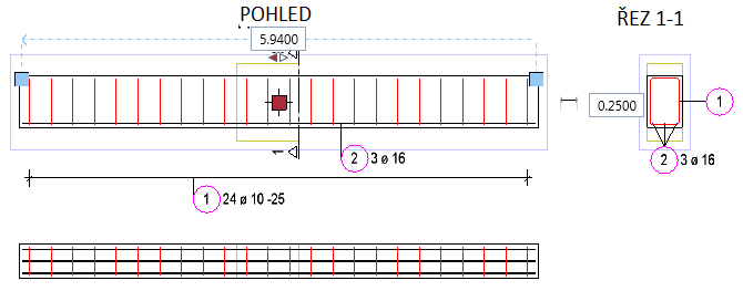 Geometrické úchopy. Dále se zobrazí zadávací pole pro délku uložení a vzdálenost případně počet kusů.