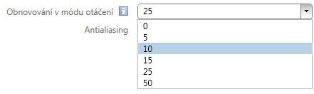 Možnosti - Pracovní prostředí - Zobrazení můžete nyní v Obnovování v módu otáčení nastavovat také nižší hodnoty: Vedle 25 a 50 můžete nyní volit hodnoty 5, 10 a 15.