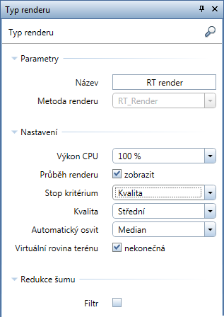 V paletě typu pohledu RT render můžete používat nové možnosti.