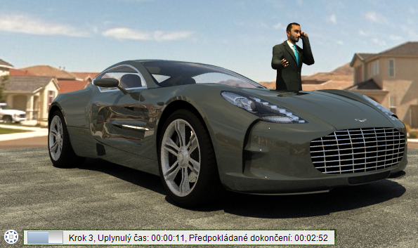 Pokud je aktivována volba Zobrazit pokrok rendrování, pak se nastavení a aktuální stav výpočtu zobrazuje dole v okně.