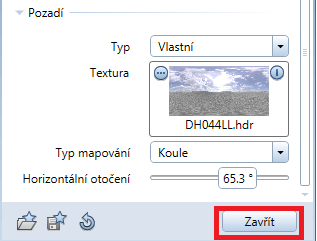 Ve všech nových paletách v Amimaci najdete nyní tlačítko Zavřít (například Okolí, Povrchy, Nastavení světel pro projekt, Dráha kamery atd.).