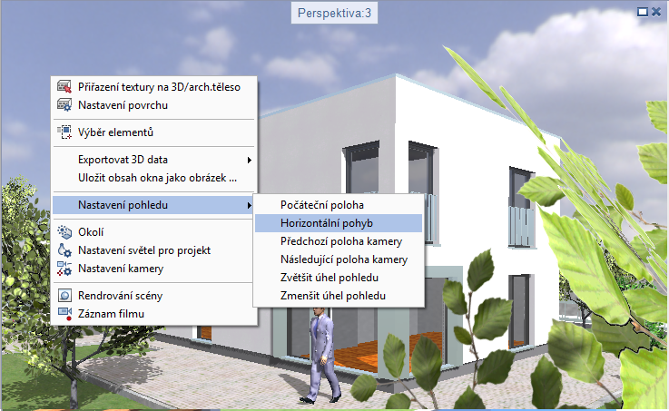 V předchozích verzích bylo možné zarovnat horizontálně pouze kameru v animačním okně. Nyní máte funkci Zarovnat horizontálně k dispozici ve všech typech pohledů. Funkci najdete v kontextovém menu okna, ale můžete pro ni rovněž definovat klávesovou zkratku.