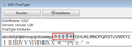 V Číně se používá font TrueType SJOY, aby se různé třídy oceli znázorňovaly různými symboly průměru. Abyste tento font mohli používat pro popisování v Allplan, musíte jej nainstalovat jako systémové písmo.