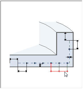 The currently selected reinforcement type is displayed in the graphics area. You can click the geometric parameters shown graphically in order to define them. The parameter area updates immediately to reflect your entries.