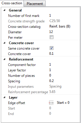 Circular reinforcement provides a second tab where you can define parameters for the placement.