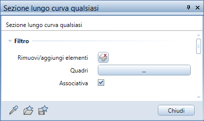 Nella palette Sezione lungo curva qualsiasi ora è disponibile il campo aggiuntivo Filtro in cui è possibile definire quali elementi rappresentare nella sezione e se le modifiche apportate nella palette e nel modello 3D devono essere considerate automaticamente.