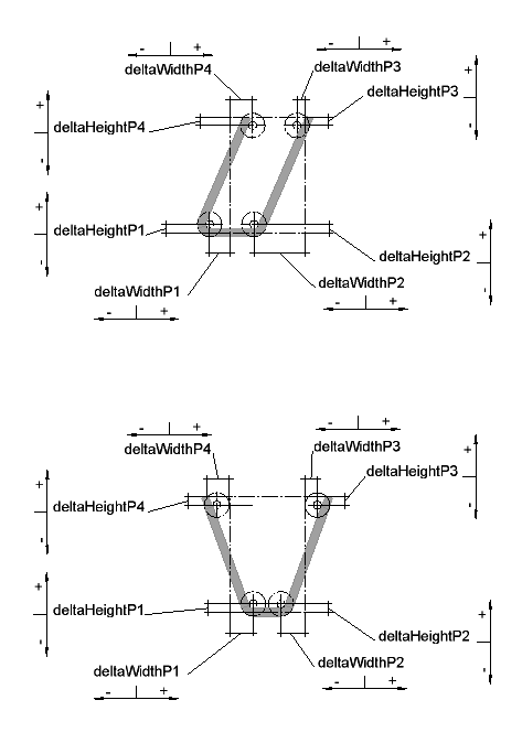 dw1, dw2 ... dw4: delta width at segment point 1 ... 4