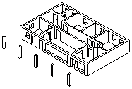 This way, you can quickly hide the elements you don't need during the current design phase, selectively modify elements in the displayed layers, check your plan and see whether all the elements are assigned to the desired layer. For example, you might choose to hide the slab layer and then view the spatial arrangement of the building as a hidden line image in perspective view.