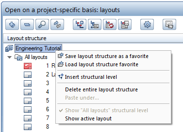 Tip: The predefined layout structures (Allplan_BIM_LayoutStructure.xml) are in the ...\Etc\BIM folder. You can also use them without having to apply a building structure. To do this, select Load layout structure favorite on the shortcut menu of the project folder.