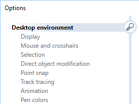 You can also find specific options in the Options dialog box. Click the magnifier in the top part of the Options dialog box.