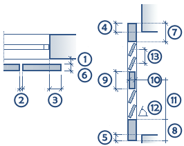 You can enter the Thickness, Width, Angle (12) and Offset (13) for the slats of the folding shutters.