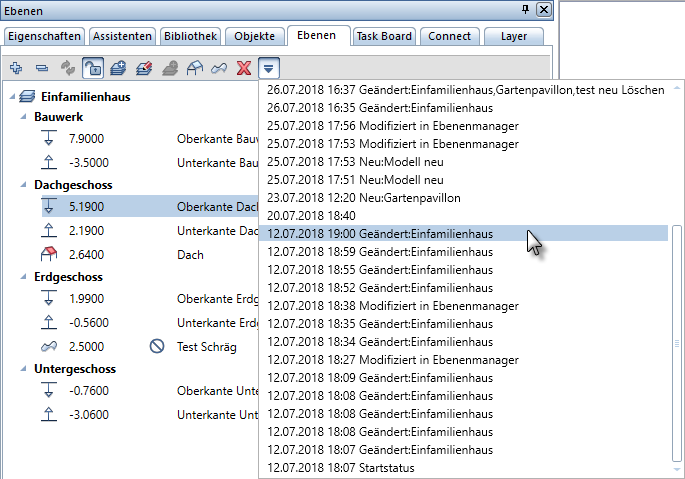 You can see a dropdown list with all states you have saved since you created the plane model. This list is sorted by date and time, describing the changes briefly.