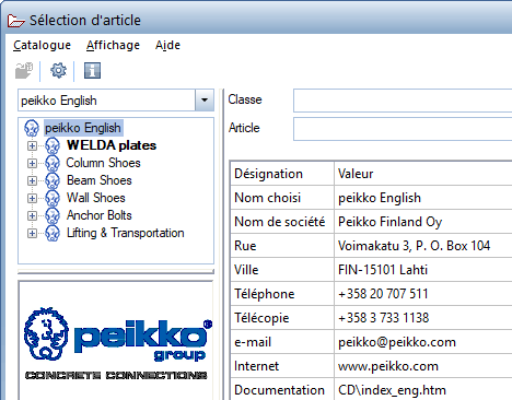 Le contenu du catalogue Peikko a été adapté au programme de livraison actuel. Le catalogue d'article contient désormais des platines d'ancrage, des pieds de poteau, de poutre et de mur, des connecteurs et boulons d'ancrage, ainsi que ancres de levage et de transport. L'armature anti-poinçonnement ne figure plus dans la version remaniée du catalogue.