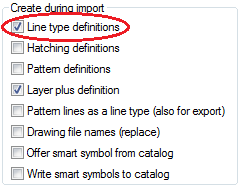 - When the Line type definitions check box is enabled in the Interfaces Options (ODX), Allplan 2020 specific tab, the Allplan line type definitions are overwritten by the line type definitions in the DXF file.
