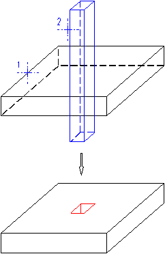 You can use this tool to remove the common volume of one or more solids or 3D surfaces from another solid or 3D surface, creating cutouts. The solids and 3D surfaces will be deleted.