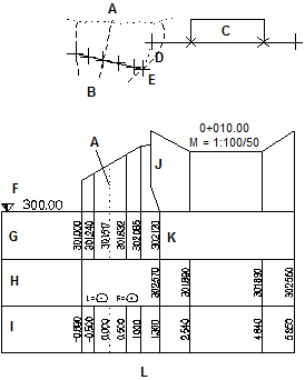 F Reference height G Height H Longitudinal I Station J Skew K Summing up the horizons with consecutive stations L Height lines without skew |