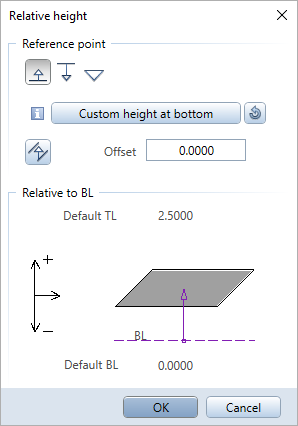 Based on the reference point, you can link converted user-defined architectural elements with any reference surface or reference plane in the drawing file or plane model. By default, Allplan uses absolute height values.
