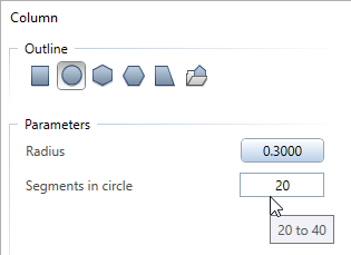 In earlier versions, round columns had a fixed number of segments, which was 20. Columns with outlines saved as symbols, on the other hand, were preset to 36 segments.