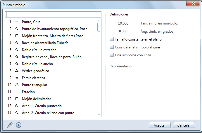 Plano de situación para crear puntos símbolo, pueden asignárseles números de punto de forma automática. El número de punto, el cual consiste en un máximo de ocho dígitos, se obtiene de un número de punto primario de cuatro dígitos y de un número de punto secundario de cuatro dígitos. Estos números de punto también se muestran cuando comprueba las coordenadas con la herramienta de mediciones.