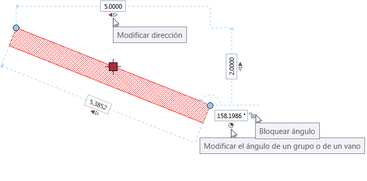 Cuando edita elementos inclinados puede desbloquear el ángulo de inclinación con respecto a la horizontal o mantenerlo bloqueado.
