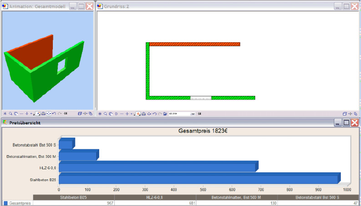 Junto con Allplan Baukosten o Allplan Baukonto, los costes se muestran inmediatamente y se actualizan durante el proceso de diseño.