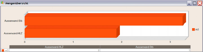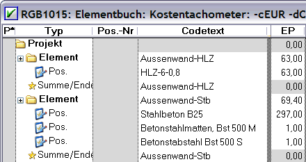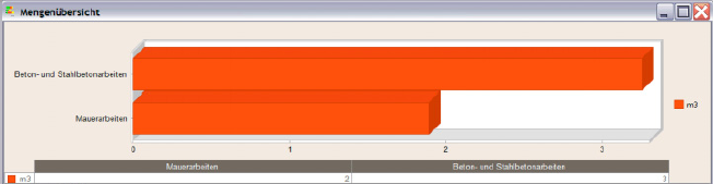 Si no hay asociación con un proyecto Allplan Baukosten o Allplan Baukonto, el indicador de costes cambiará a uno de mediciones y mostrará las mediciones utilizadas para cada obra o material (sin precios).