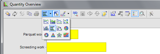 Puede utilizar el menú contextual para realizar cambios en el indicador de mediciones/costes así como la barra de herramientas. Puede definir la apariencia gráfica de las tablas y gráficos, eligiendo un color, si es 2D o 3D y guardarlos como plantillas, que podrá recuperar.