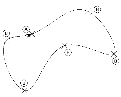 (B) Definierte Punkte, hier Stützpunkte des Splines