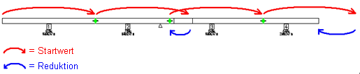 Maximum element length: depending on the visible side specified, the program creates wall elements of maximum possible length in the direction of the wall or in the opposite direction. The starting value for the length of the elements is defined by the value for the Maximum length in the Parameters for dividing length area. By incrementally reducing this starting value, the program ensures that the division criteria (maximum element weight, criteria for openings, ...) are met.